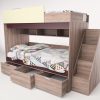 Детали кровати, которые в эксплуатации подвержены механическим повреждениям, облицованы кромкой ПВХ толщиной 2 мм. Спальные места 1950*900 мм. Основание щитовое, в нижней части основания установлены три выдвижных ящика. Лестница крепится к кровати стяжками колпачковыми. Может быть собрана как в правом, так и в левом исполнении. Дополнительно можно доукомплектовать шкафом для одежды.
