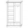 Ящики на направляющих Hettich, петли без доводчиков, задняя стенка изготовлена из ХДФ. При желании петли с доводчиками можно приобрести дополнительно и самостоятельно установить их. Крышка, карниз, стенки боковые, накладки ящиков, двери, пыльник изготовлены из эко-массива и защищены лаком на водной основе. В левой части шкафа установлены три съемные полки и одна несъёмная, в правой части – несъемная полка и штанга выдвижная. Декоративные элементы на фасаде из ПУ. Шкаф устанавливается на нерегулируемые опоры.