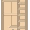 Детали шкафа, которые в эксплуатации подвержены механическим повреждениям, облицованы кромкой ПВХ толщиной 2 мм. Петли без доводчиков, при желании петли с доводчиками можно приобрести дополнительно и самостоятельно установить их. Задняя стенка изготовлена из ХДФ. В левой части шкафа установлена несъемная полка из ДСП, штанга для одежды и два ящика на шариковых направляющих. В правой части установлены пять несъемных полок из ДСП.