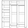 Петли без доводчиков, задняя стенка изготовлена из ХДФ. К средней двери крепится зеркало с фацетом 10мм по периметру. В левой части шкафа за дверью установлены несъемные полки. В средней и правой части шкафа за дверями штанга для одежды. Средняя дверь открывается после открытия правой двери. При желании петли с доводчиками можно приобрести дополнительно и самостоятельно установить их. Функцию ручки на двери выполняет фрезеровка выемка в торце фасада.