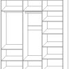 Петли без доводчиков, задняя стенка изготовлена из ХДФ. Функцию ручки на левой и правой двери выполняет вертикальная деталь из ДСП. Средняя дверь открывается после открытия левой. К правой двери прикреплены декоративные элементы в шахматном порядке из МДФ плёночного. Двери и передний «бруски ручки» облицованы износостойкой кромкой ПВХ. К средней двери закреплено зеркало т. 4 мм. За средней и левой дверью штанга для одежды. При желании петли с доводчиками можно приобрести дополнительно и самостоятельно установить их.