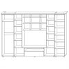 Ящик на шариковых направляющих, петли без доводчиков, задняя стенка изготовлена из ХДФ. При желании петли с доводчиками можно приобрести дополнительно и самостоятельно установить их. Фасад и карниз изготовлены из МДФ плёночного. Детали шкафа, которые в эксплуатации подвержены механическим повреждениям, облицованы кромкой ПВХ толщиной 2 мм. Двери центральной части шкафа со стеклами, за ними установлены съемные стеклянные полки толщиной 4 мм. В правой части шкафа установлены три съемные полки и две несъемные, в левой части две несъемные и штанга выдвижная. Шкаф установлен на нерегулируемые опоры. Размер ниши под TV – 1195*800.