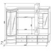 Ящики на шариковых направляющих GTV, петли для стекла осевые. Детали шкафа, которые в эксплуатации подвержены механическим повреждениям, облицованы кромкой ПВХ толщиной 2 мм. Передняя стенка из МДФ плёночного с накладными зеркалами и двумя несъемными полками за ней. Стекла с кристаллами «Сваровски» и полноцветным рисунком на внутренней стороне, нанесенным керамическими красками. За стеклянной дверью установлено зеркало и съемная стеклянная полка, Поворотная часть состоит из двух стекол радиусной формы с кристаллами «Сваровски» и полноцветным рисунком на внутренней стороне, нанесенным керамическими красками. За поворотной витриной установлено зеркало (для варианта орех шоколадный), а внутри три съемные стеклянные полки открытие витрины осуществляется при помощи поворотного устройства. В верхней и нижней части передней стенки установлены зеркала с шелкотрафаретным рисунком и кристаллами «Сваровски». Карниз имеет декоративную вставку из эко кожи. Шкаф комбинированный установлен на девяти нерегулируемых опорах.