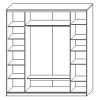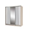 На шкаф установлен механизм шкафа купе Сенатор. Средняя дверь изготовлена из зеркальной вставки, а правая и левая дверь изготовлена из комбинации стекла эмалит и МДФ пленочного. Стекло эмалированное – это стекло, на одну из поверхностей которого наносится эмалевая краска и после её высыхания стекло подвергается закалке, обладая всеми свойствами безопасного закаленного стекла. Детали шкафа, крышка, боковые стенки, которые в эксплуатации подвержены механическим повреждениям, облицованы кромкой ПВХ. В правой и левой части шкафа за дверями несъемные полки, а в средней части штанга для одежды. Система раздвижения Сенатор обеспечивает плавное и бесшумное скольжение дверей и создаёт эффект парения в воздухе.