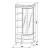 Открытие витрины осуществляется при помощи поворотного устройства.Детали шкафа, которые в эксплуатации подвержены механическим повреждениям, облицованы кромкой ПВХ толщиной 2 мм. Витрина состоит из двух стекол радиусной формы с кристаллами «Сваровски» и полноцветным рисунком на внутренней стороне, нанесенным керамическими красками. За витриной установлено зеркало (для варианта орех шоколадный), а внутритрисъемные стеклянные полки. В правой части шкафа установлены три несъемные полки. Карниз имеет декоративнуювставкуиз эко кожи. Шкаф установлен на пяти нерегулируемых опорах.