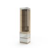 Два ящика на шариковых направляющих H=35 AKS LIGHT. На боковых стенках закреплены декоративные накладки из МДФ толщиной 8мм. пленочного в цвет фасада. За дверью установлены три полки из стекла т. 4 мм., за полками установлено зеркало. Стенки боковые изготовлены из ДСП и стекла цвет бронза с фацетом 20мм по одной длинной стороне. Дверь изготовлена из стекла цвет бронза с фацетом 20мм по двум длинным сторонам. Открытие двери осуществляется слева направо. Функцию ручки на накладках ящиков выполняет фрезеровка выемка в торце фасада.