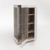 Петли без доводчиков, задняя стенка изготовлена из ХДФ. Двери изготовлены больше корпуса со свесом для удобства открывания. За стеклянной дверью установлены съемные стеклянные полки толщиной 4 мм. За дверью из ДСП установлены несъемные полки. Для уменьшения уровня шума при закрывании стеклянной двери к деталям, соприкасающимся с дверью, клеится отбойник силиконовый. Открытие дверей осуществляется слева направо. При желании петли с доводчиками можно приобрести дополнительно и самостоятельно установить их. Правая часть выступает вперед по отношению к корпусу, что создает 3Д эффект.