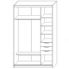 На шкаф установлен механизм шкафа купе Сенатор. Двери изготовлены из комбинации зеркала с шелкотрафаретным рисунком и ДСП т. 10 мм. Детали шкафа, которые в эксплуатации подвержены механическим повреждениям, облицованы кромкой ПВХ. В левой части шкафа за дверями установлена штанга для одежды, в правой части шкафа за дверями установлены несъёмные полки и ящики на роликовых направляющих GTV. Система раздвижения Сенатор обеспечивает плавное и бесшумное скольжение дверей и создаёт эффект парения в воздухе.