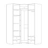 Петли без доводчиков, ящики на шариковых направляющих задняя стенка изготовлена из ХДФ. К средней двери крепится зеркало с фацетом 15мм. и стекла с шелкотрафаретным рисунком. Вставки крайних дверей изготовлены из плиты ХДФ фасадной и имеют радиусную форму. В левой части шкафа за дверью три съёмные и одна несъёмная полка, в правой части установлены штанга для одежды, а в средней части установлены небольшие три съёмные и две несъёмные полки, а также штанга для одежды. При желании петли с доводчиками можно приобрести дополнительно и самостоятельно установить их.
